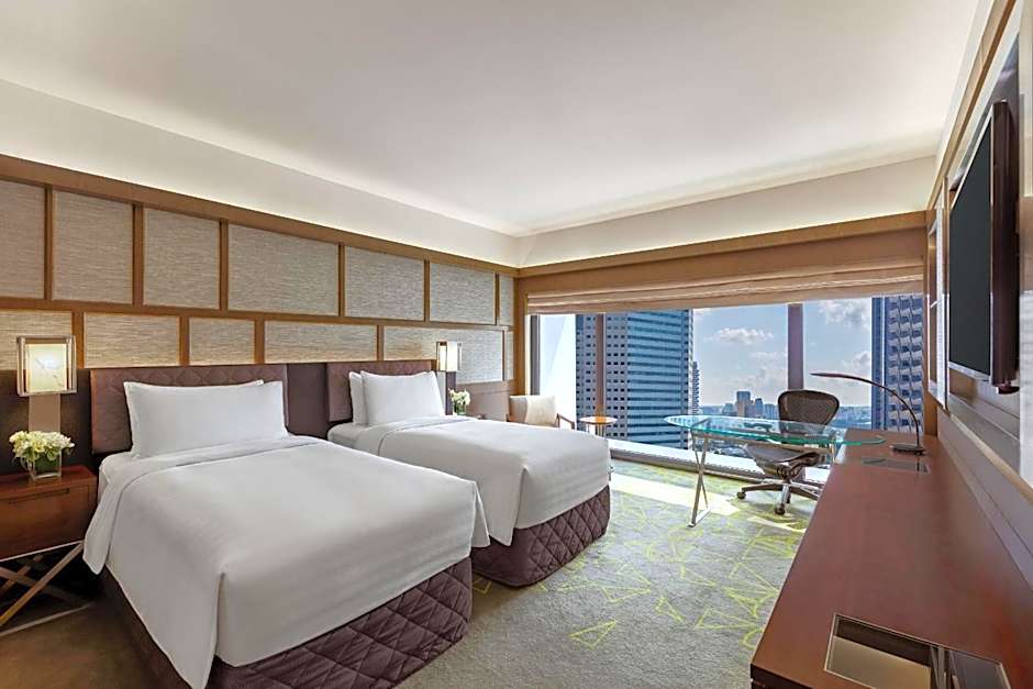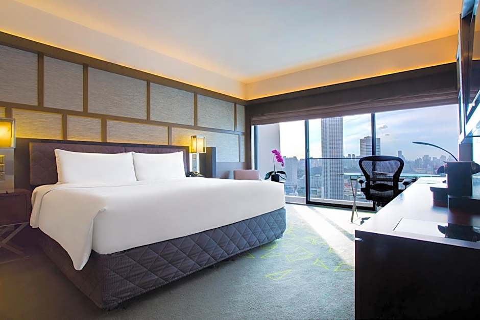 Featuring panoramic views of the city skyline from floor-to-ceiling windows, this air-conditioned room offers a 40-inch LCD TV, desk with ergonomic Herman Miller chair, Nespresso machine and mini-bar. The private bathroom includes speakers, a rain shower and Kaldewei.